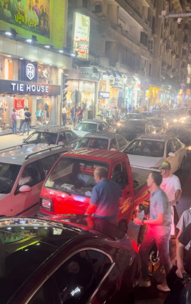 夕食後はホテルに向かいます。夜の交通量が凄まじいです。ここで現地添乗員さんから驚きの情報が。「エジプトには信号がない」とのこと。正確には数個の信号はあるようですが、ほぼ機能していないとのこと。改めて見渡してみると、道路は無法地帯です。道路が渋滞中であろうと、車が飛ばしている最中であろうと、歩行者が器用に横断していきます。日本人には無理だと思われます。見てるだけで難易度の高さが伝わってきます。歩行者優先ではなく、車優先の社会とのことでした。